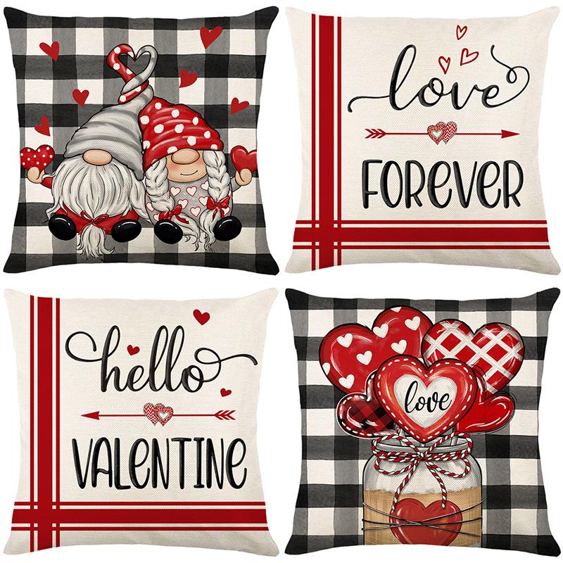 Valentine's Day Black and White Checkered Print Cushion Cover New Home Sofa Decoration Cushion Cover Bedroom Cushion Cover