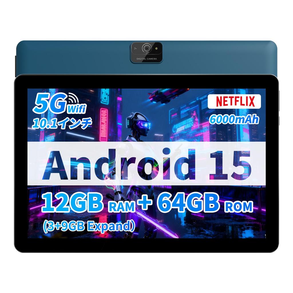 [New Android 15 10-inch Tablet | 12GB + 64GB + 1TB Expandable] Equipped with the latest Android 15. Optimized for 64-bit apps for faster performance. 3GB + 9GB virtual RAM and 64GB ROM for comfortable multitasking. Plus, with up to 1TB of microSD expansion, you can use it without worrying about storage space for photos, videos, and apps.