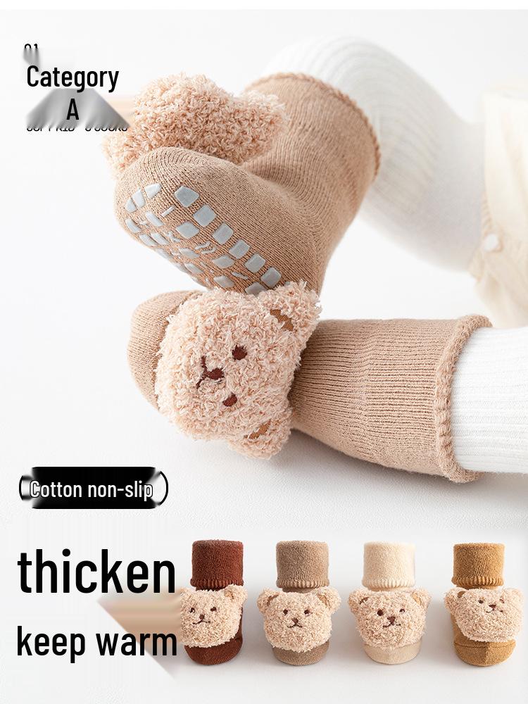 Thick Fleece-Lined Mid-Calf Socks for Newborns - Cotton, Warm, and Loose-Fit for Autumn and Winter