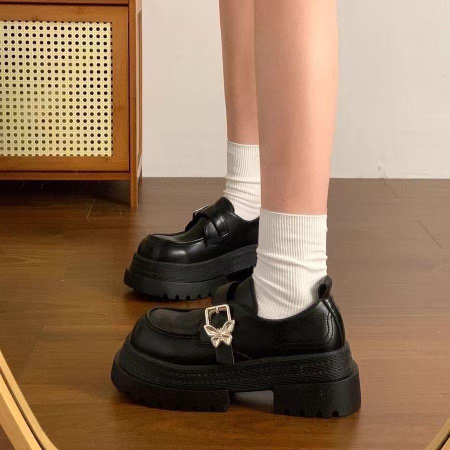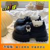 Black Thick Heel Loafers Versatile Round Head Platform Heightening Single Shoes British Style Small Leather Shoes Women's 2025 Spring and Autumn New