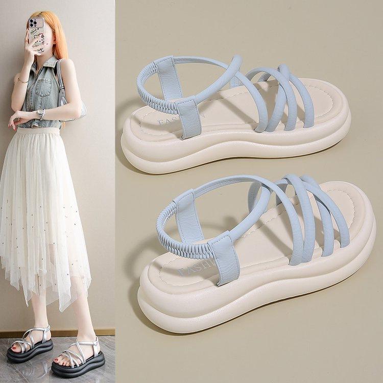Thick-soled Roman Sandals Women's 2025 Summer New Outer Wear Soft Sole with Skirt Fairy Wind Cross Strap Beach Shoes