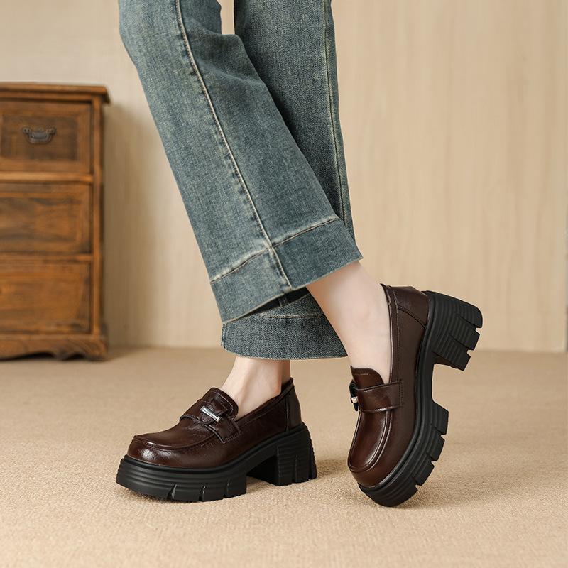 9266-23 British Style Heightened Platform Small Leather Shoes Women's 2025 Spring and Autumn New Versatile Retro Thick Heel Loafers