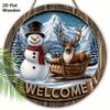 Christmas Wooden Welcome Sign with Snowman & Elk Pattern - Navidad Round Sign for Front Door, Wall Hanging Decor - Ideal Christmas Ornament