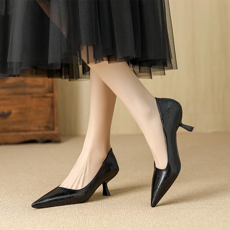 106-2 Thin Heel 2025 New Soft Leather Pointed Soft Sole Retro Leather Shoes Single Shoes High Heels Women's High Sense Non-slip