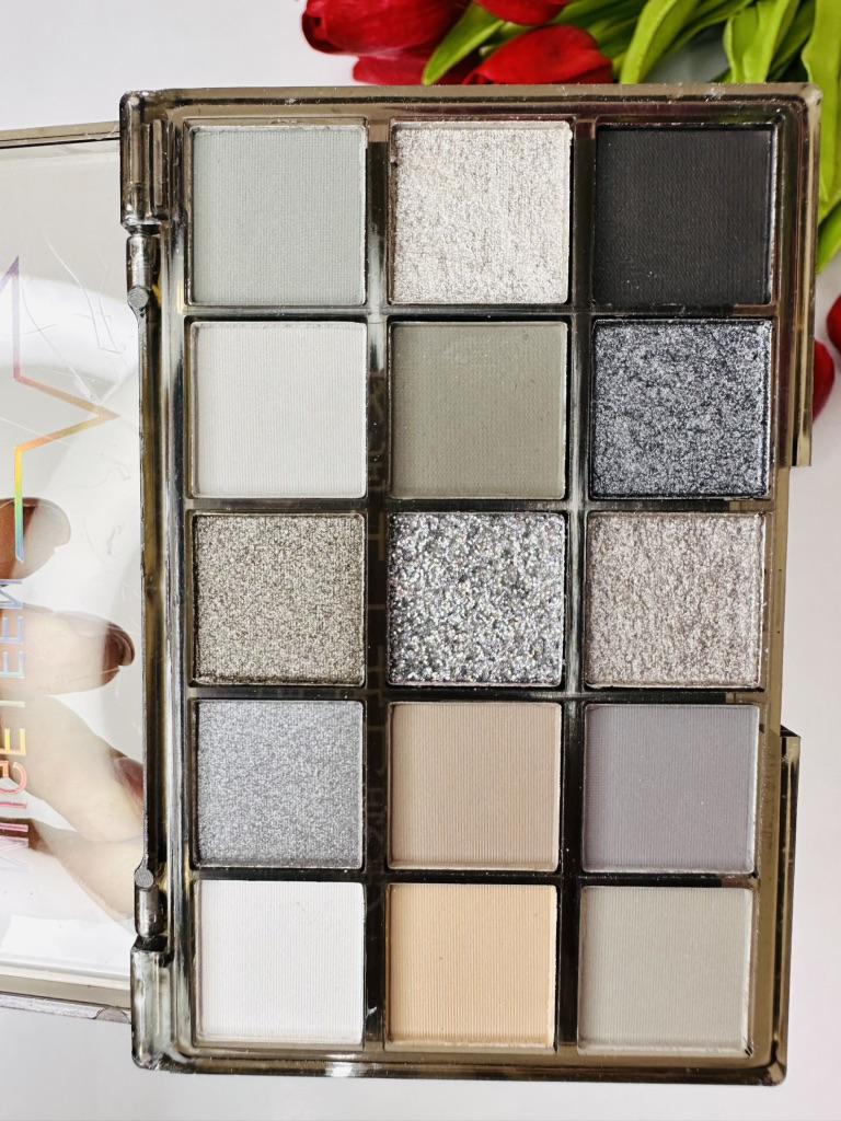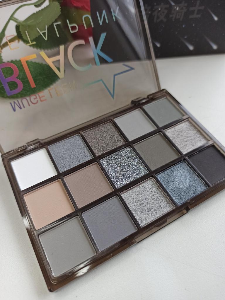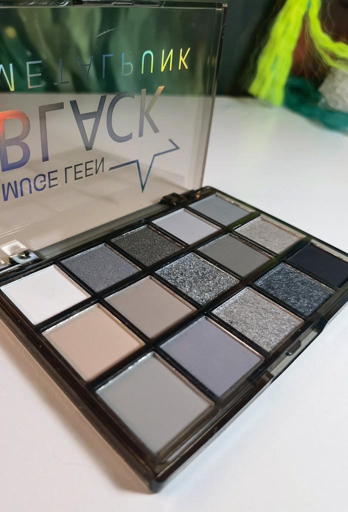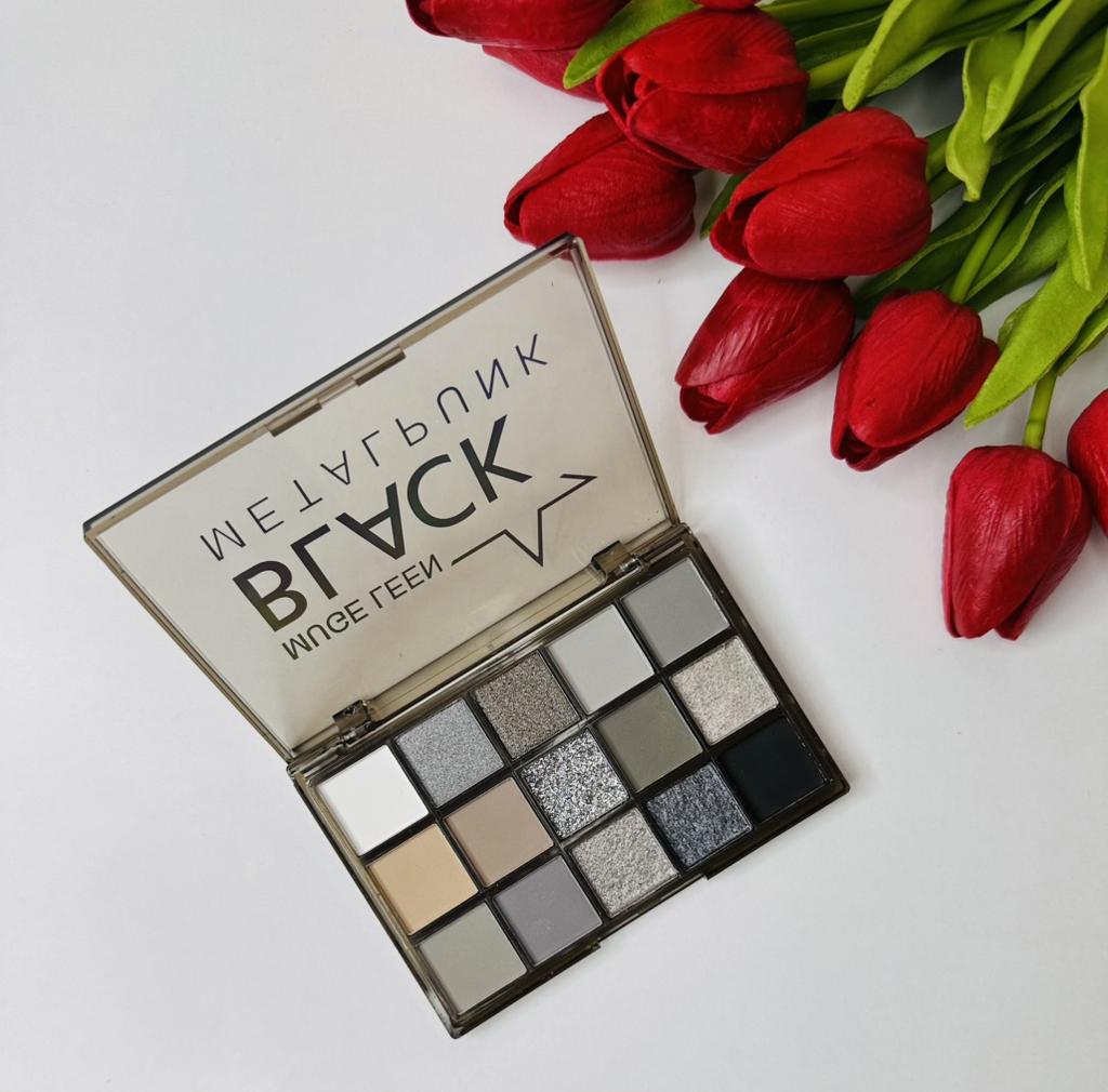 15-Shade Smoky Eyeshadow Palette Long-Lasting Highly Pigmented Eyeshadow with Versatile Matte and Glitter Finishes, Punk Black and Grayscale Colors