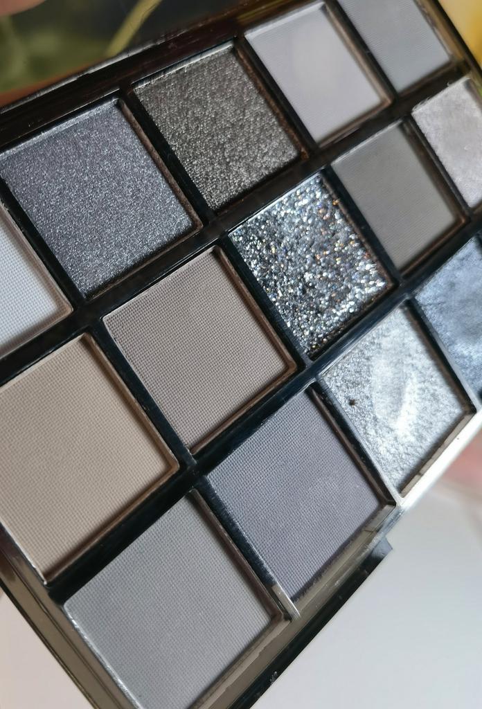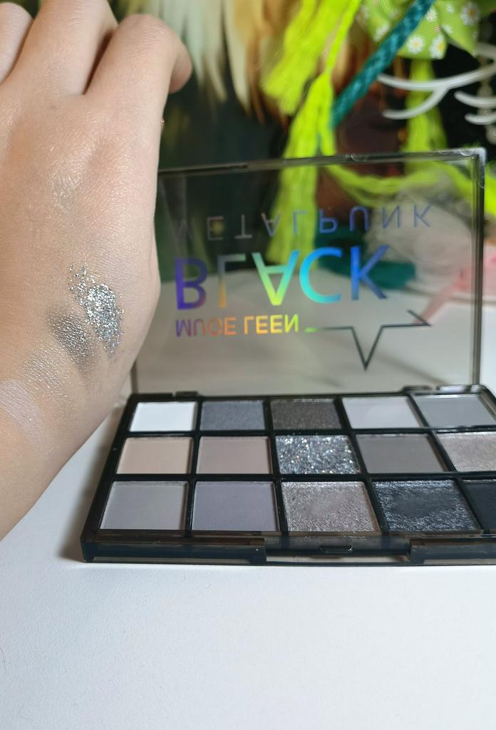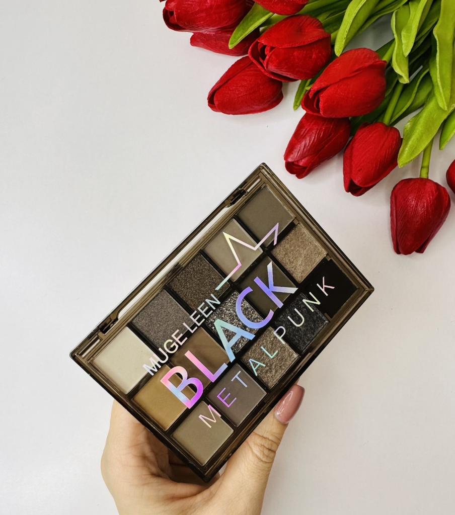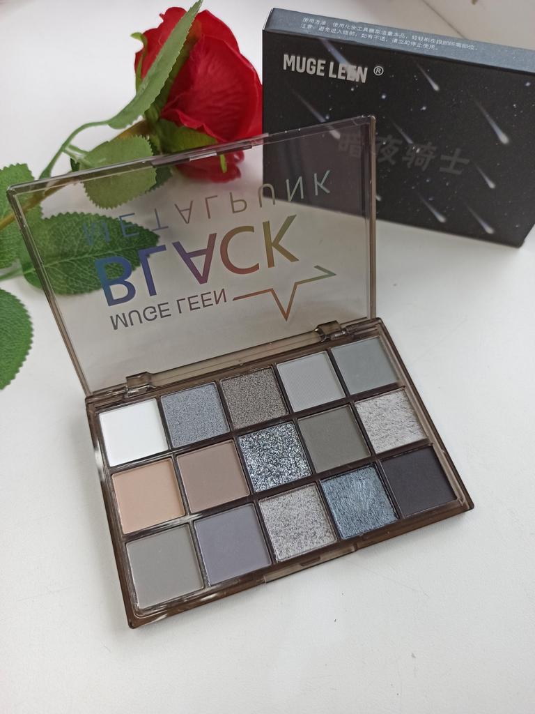 15-Shade Smoky Eyeshadow Palette Long-Lasting Highly Pigmented Eyeshadow with Versatile Matte and Glitter Finishes, Punk Black and Grayscale Colors