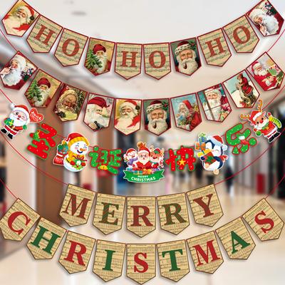 200CM Christmas Banner Paper Santa Elk Tree Reusable Holiday Indoor Outdoor Xmas Wall Hanging Flag Bunting Garland Decoration Pendant Festival Gift