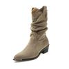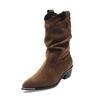 Sharp Pointed Stacking Boots for Women 2025 New Retro Short Boots with Thick Heels Western Cowboy Boots