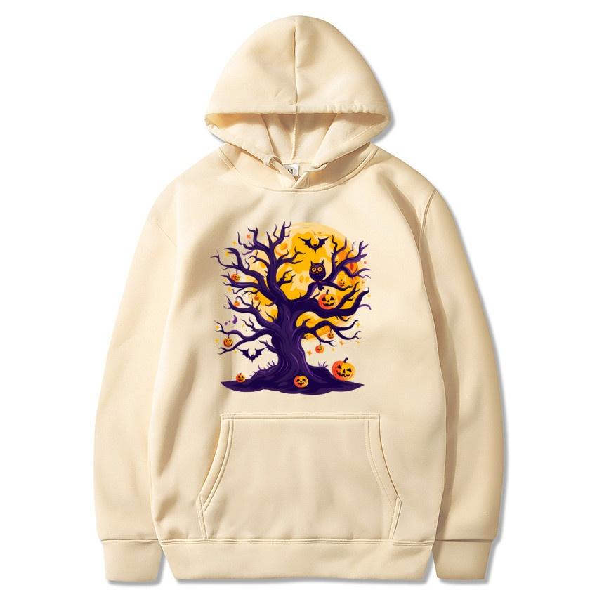 Halloween Tree Autumn Winter Fleece Hoodie Street Fashion Harajuku Hoodie Men's and Women's Long Sleeve Warm Hoodie