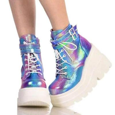 Punk Cosplay Women Sequin Boots Ladies High Boots Comfort Long Tube Boots Pink Platform High Wedges Women Shoes Gothic Boots