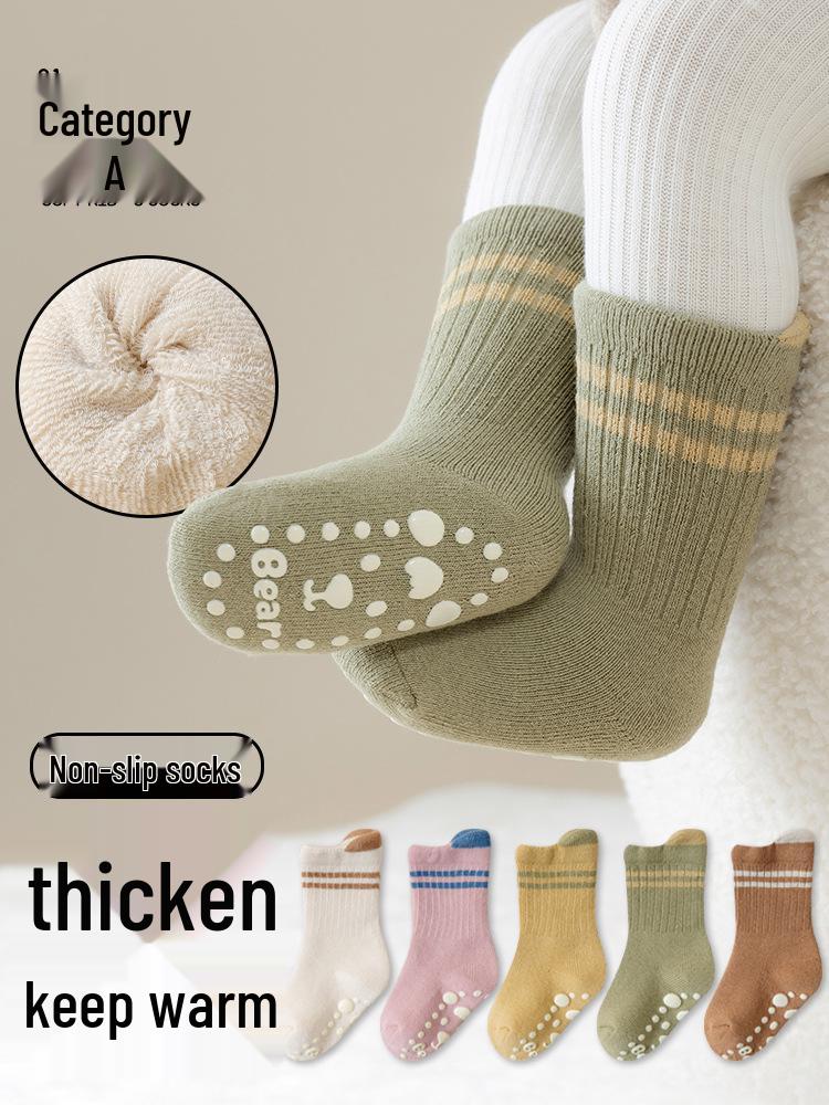 Extra Thick Warm Non-Slip Cotton Socks for Newborns & Toddlers - Terry Fleece Lined for Autumn/Winter