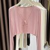 This elegant cardigan shawl is designed specifically for women seeking plus-size options. Crafted from luxurious modal fabric, it offers a smooth and ultra-thin feel, perfect for lightweight layering. It features a solid pattern and a stylish V-neckline, providing a chic and versatile look. The long sleeves extend sun protection, making it an ideal choice for warm or sunny days. Whether dressing up for a special occasion or adding a graceful touch to casual outfits, this shawl combines functionality with contemporary style.