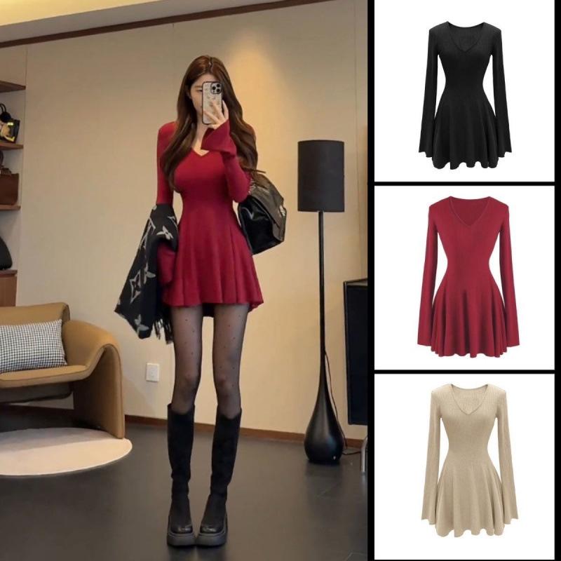 Embrace the cozy elegance of autumn and winter with this beautifully knitted A-line dress, designed to accentuate your figure with a slimming and flattering fit. Crafted from high-quality polyester, this dress offers a soft and comfortable wear, making it an essential addition to your seasonal wardrobe. Perfect for both casual and formal occasions, its timeless design ensures you stay stylish and chic throughout the cooler months.