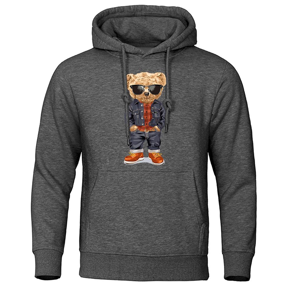 Funny Pose Teddy Bear Prints Men Hoodie Loose Pocket Hoody Autumn Oversize Sweatshirt Fashion Casual Fleece Pullover Unisex