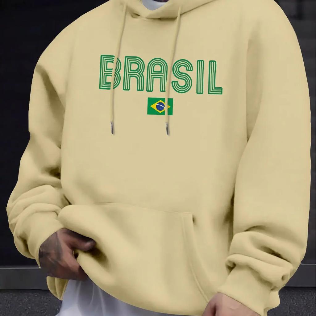 Brazilian Style Men's Hoodie Geometric Pattern Casual Pullover Kangaroo Pocket Autumn Casual Top