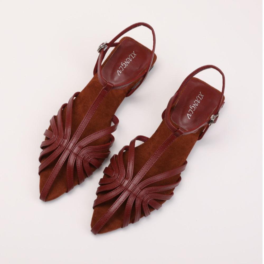 Knitted Low Heeled Roman Shoes for Women's 2025 Summer New Style Open Toed Straight Leg Sandals for Outdoor Travel Beach Shoes