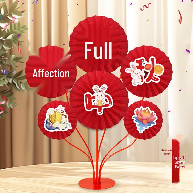 Mid-Autumn Festival Paper Fan & Flower Decorations for Mall, Jewelry Store, Table, and National Day Activities