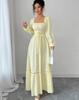 2025 Early Autumn Women's U-neck Long Sleeve Lace Patchwork Waist-Cinching Dress