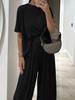 This chic two-piece set features drapey wide-leg pants paired with a matching top, designed to offer both comfort and style. Crafted from high-quality polyester, this set showcases a professional yet casual look with its loose fit and solid color pattern, making it a versatile addition to your wardrobe. The sportive style ensures ease of movement, making it ideal for various occasions, from work to leisurely outings.
