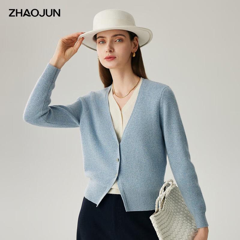 Zhaojun Women's 100% Cashmere V-Neck Faux Two-Piece Knit Sweater