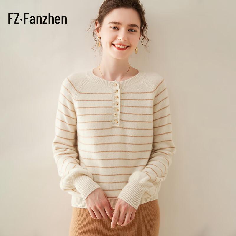 Fanzhen Women's Striped Cashmere Blend Sweater