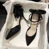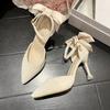 High Heels Women's Spring New Bow Thin Heel Cut Men's One-word Buckle Single Shoes Fairy Style French Pointed Head