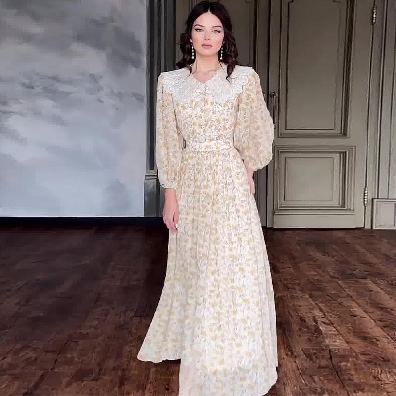 2024 European & American Color Block Patchwork Peter Pan Collar Dress for Women