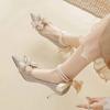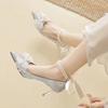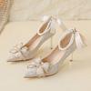 Bow High Heels Wedding Shoes Women's 2025 New Spring Bridesmaid Shoes Bride Shoes Stiletto Crystal Shoes French Single Shoes