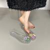 Lazy Shoes Women's Korean Version of Jelly Crystal Shoes Single Shoes Cool Slippers Square Head 2025 New Shallow Mouth One Pedal Adult