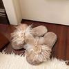2025 Autumn and Winter New Sweet Flower Fluffy Slippers Women's Flat Bottom Home Plush Open Toe One-word Cotton Mop