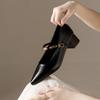 New Thick Heel Mary Jane Women's Shoes 2025 Spring and Autumn New French Pointed Metal Word with Middle Heel Single Shoes