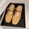 Super Versatile~ Retro Square Head Woven Hollow Bag Head Half-tray Shoes for Women To Wear One-word with Thick Heel Muller Cool Slippers
