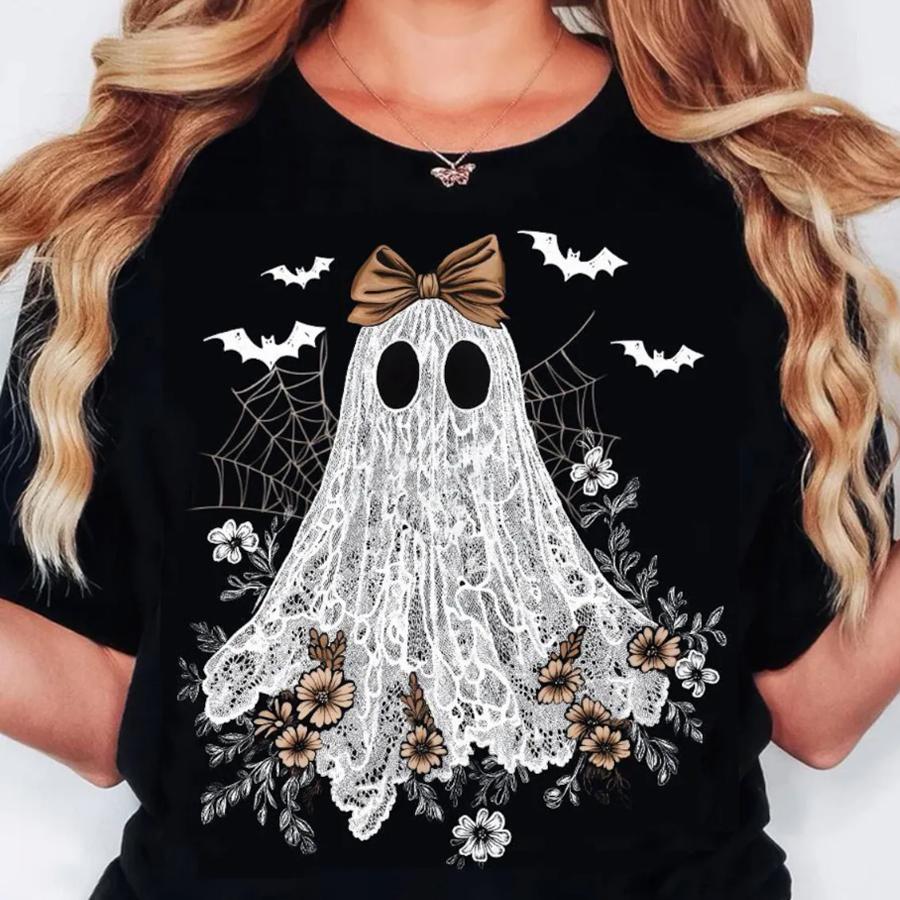 Halloween Cute Lace Ghost Cloth DIY Iron Heat Transfer Printing Stickers T-shirt Sportswear Clothing Party Decoration