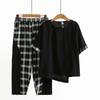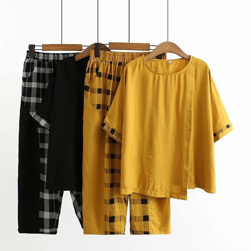 2PC Summer Suit Women Cotton T-shirt Pants Two-piece Comfortable Short-sleeved Top and Longs Pants Loose Casual Suit