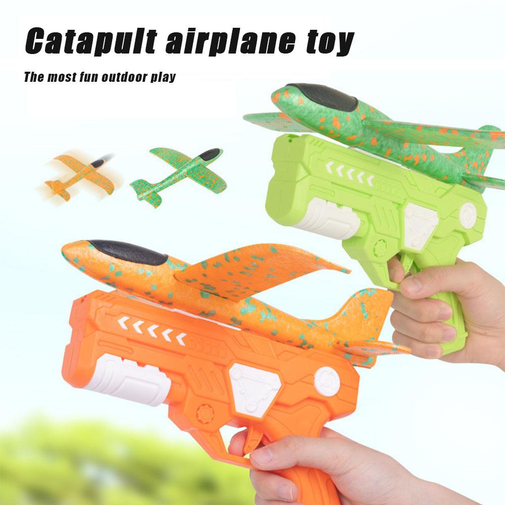 Glowing Foam Aircraft 15M Launcher Catapult Glider Aircraft Gun Toy Children's Outdoor Game Bubble Model Shooting Flying Roundab
