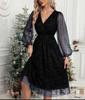 2023 Elegant V-Neck Slim Patchwork Mesh Dress