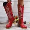Vintage Embroidered Martin Boots Women's Summer Red Heel Boots Knight Boots Short Boots Western Cowboy Boots-3