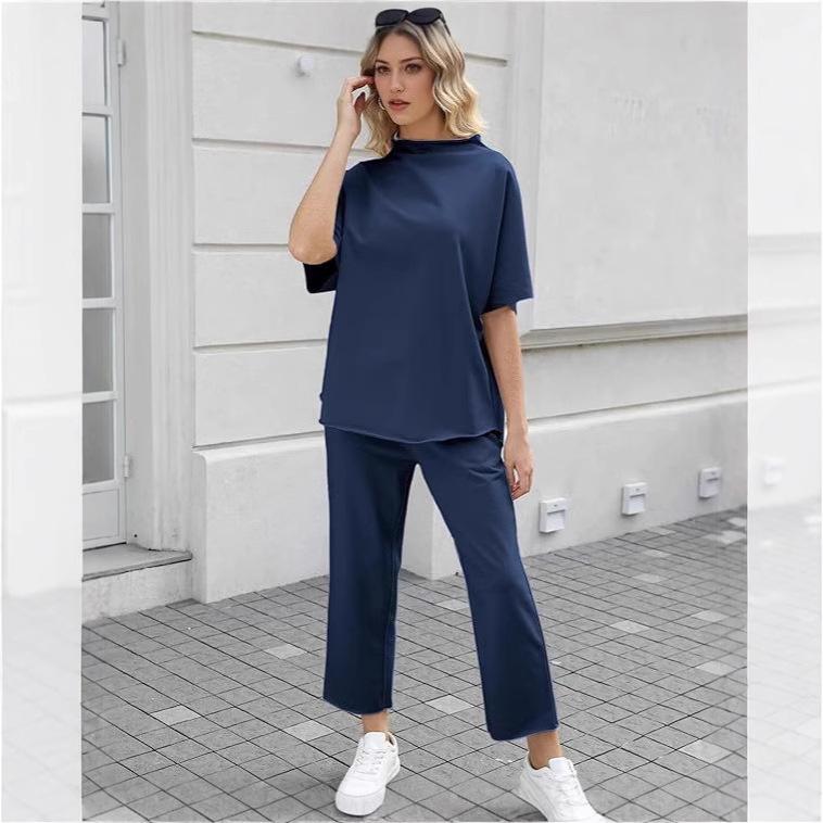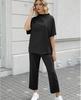 2025 Euro-American Spring/Summer Solid Color Two-Piece: Versatile Wide-Leg Pants & Top Set
