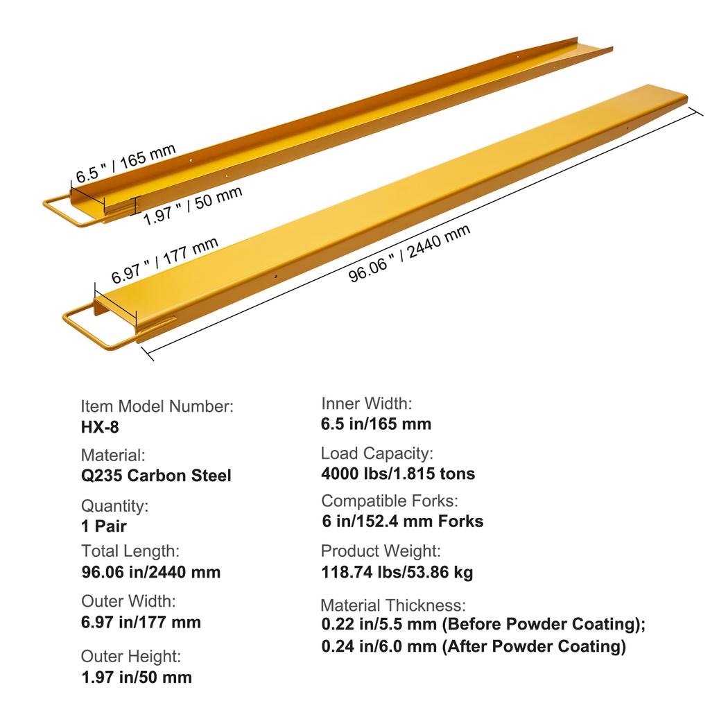 SucceBuy 96in Pallet Fork Extensions Carbon Steel Material Handling Forklift Lifting Attachments for Truck Cargo Handling
