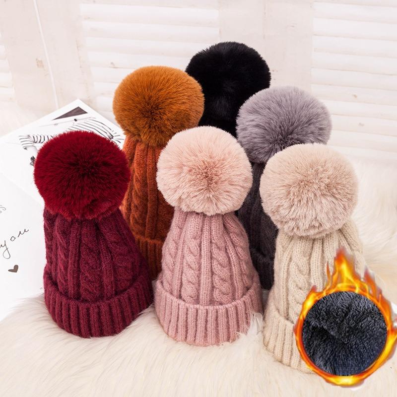 Plush Twist Wool Ball Woolen Hat for Women Winter Korean Style Thickened Button Knitted Hat Ear Protection Bag Head Hat Pullover Cold Hat