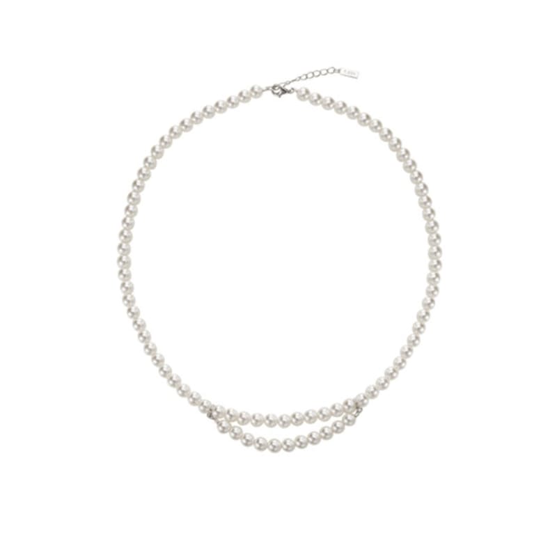 Tirr Lirr Tizen Maximize Shell Pearl 6mm Point Double Row Silver-White Bead Necklace TNSSVW14036M