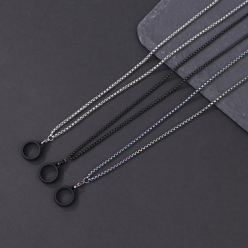 Anti-Lost Pen Lanyard Anti-Drop Portable Metal Chain Necklace Lanyard Metal Lanyard Sling Snake Bone Chain With Rubble Ring