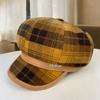 Plaid Octagonal Hat for Women Retro All Match Literary Painter Hat Autumn Face Small Newsboy Hat Big Head Beret