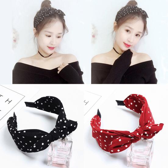 Sweet Polka Dot Print Bowknot Hair Hoop Women Wide Band Cloth Headband Headwrap