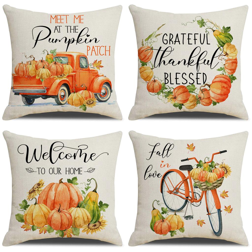 New Autumn Throw Pillow Cover Pumpkin Truck Thanksgiving Cushion Linen Digital Print Holiday Dress Up Cushion
