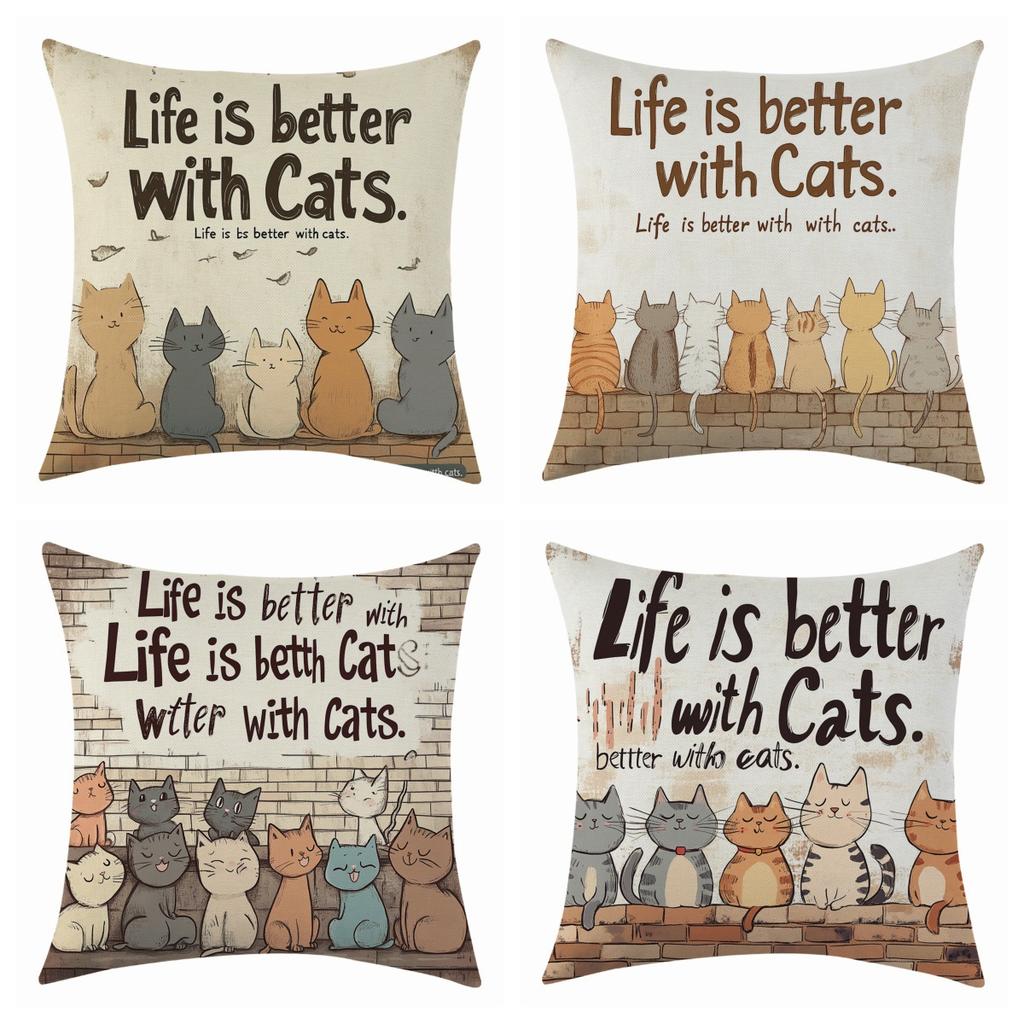 New Cartoon Cute Pet Cat Linen Pillowcase, Festive Decoration, Bay Window Sofa Waist Pillow