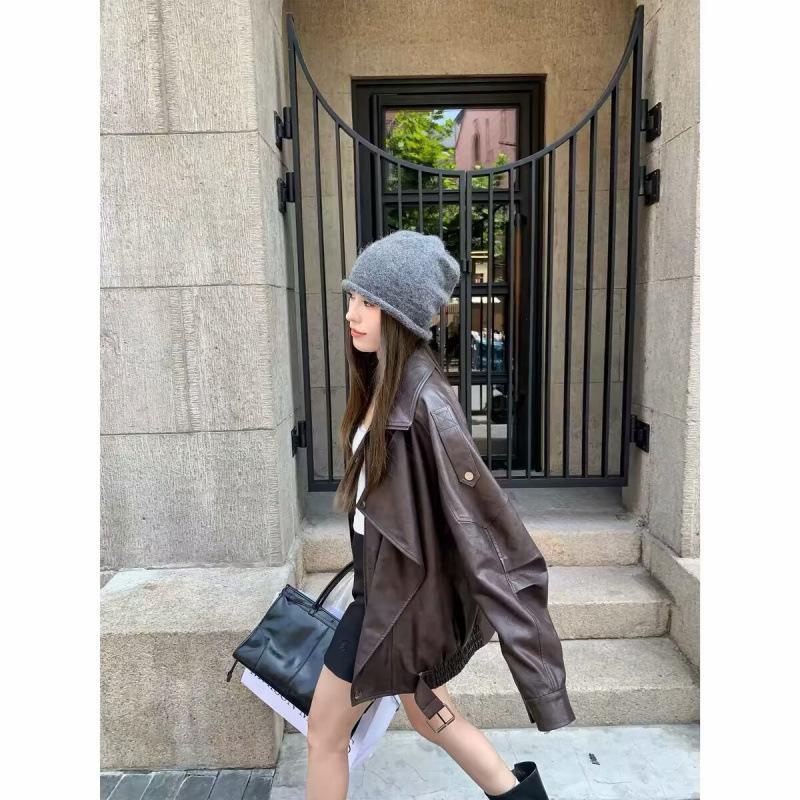 Elevate your autumn wardrobe with this luxurious brown leather biker jacket, designed specifically for couples seeking a high-end, stylish addition to their collection. This long sleeve coat features a tailored neckline, providing a sophisticated touch to its classic biker aesthetic. Crafted with premium acrylic materials, it offers both durability and comfort, while the acrylic fur adds a touch of warmth and elegance. Perfectly suited for females, this jacket effortlessly blends fashion with functionality, making it an essential piece for any chic autumn ensemble.