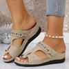 Large Size 2025 Summer Foreign Trade New Wedge Heel Women's Slippers One-word Open-toed Fish Mouth Sandals Women's Shoes Spot