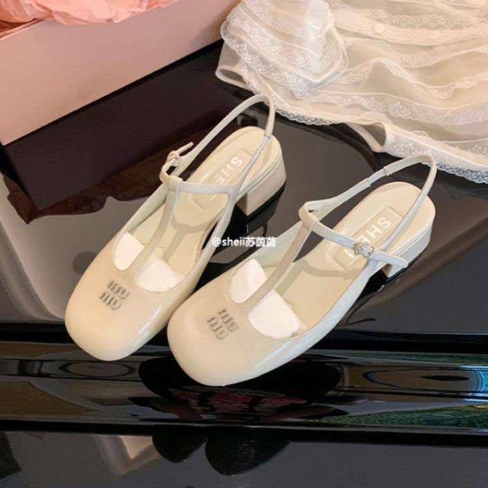 Spot Second Hair! Fashion Versatile New Miumiu Home Square Head T-button Thick Heel Bag Head Empty Sandals Women's Summer