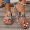 Foreign Trade Large Size Women's Slippers 2025 Summer New Flat Bottom Printing Set Toe Bohemian Ethnic Cool Slippers Women